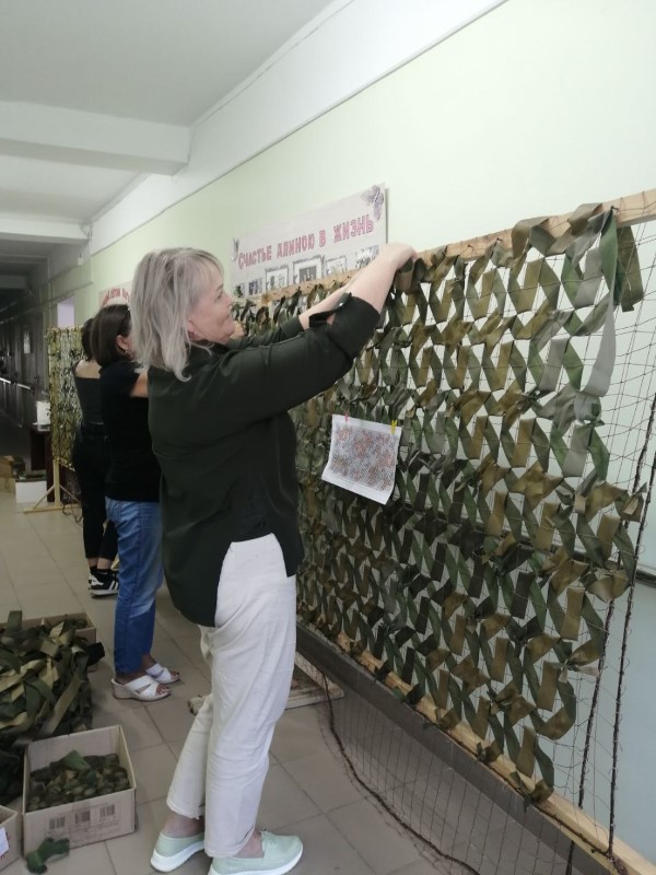Сотрудники ГБУ "КЦСОН Краснобаковского муниципального округа" продолжают изготовление маскировочных сетей для СВО