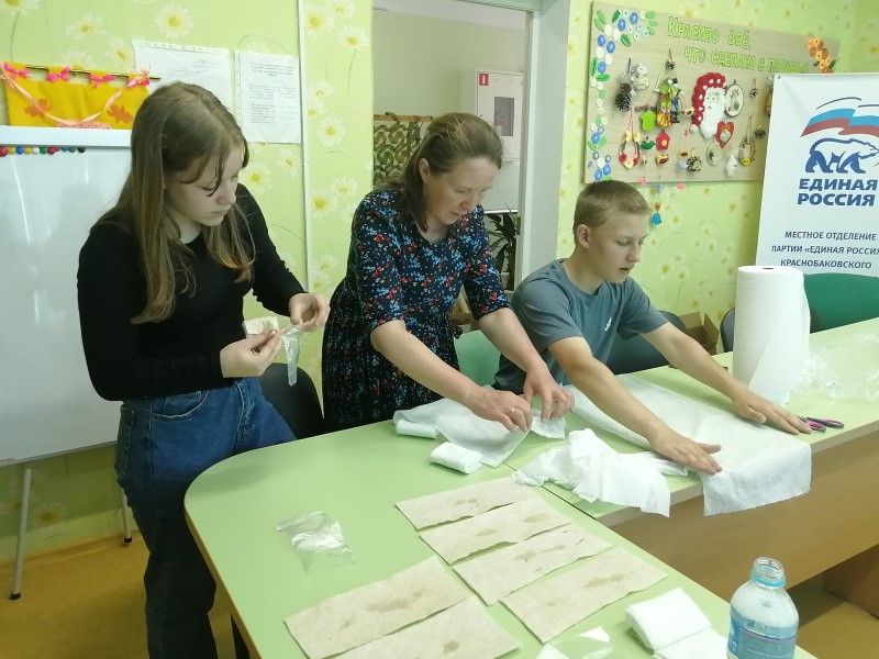 На базе ГБУ «КЦСОН Краснобаковского муниципального округа» для волонтеров и специалистов библиотеки с. Зубилиха прошел мастер класс по изготовлению сухого душа для участников специальной военной операции. Сухой армейский душ — это гигиенический набор, в состав которого входит одноразовое полотенце и губка, пропитанная специальным медицинским средством. При небольшом количестве воды (30-50 мм) она дает обильную пену, которая очищает кожу и не требует смывания водой. В таких наборах сейчас особенно нуждаются российские бойцы СВО. Участники мастер-класса убедились, что создание походных гигиенических средств несложно, и они отметили, что будут изготавливать наборы на постоянной основе.