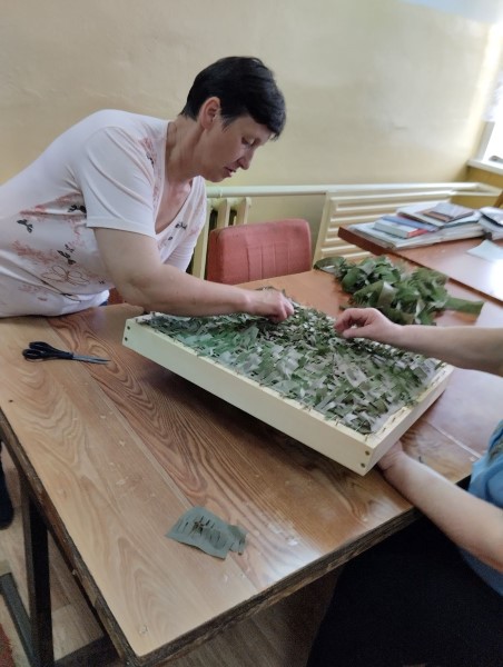 Социальные работники отделения социально-бытового обслуживания на дому №5 плетут нашлемники для участников СВО