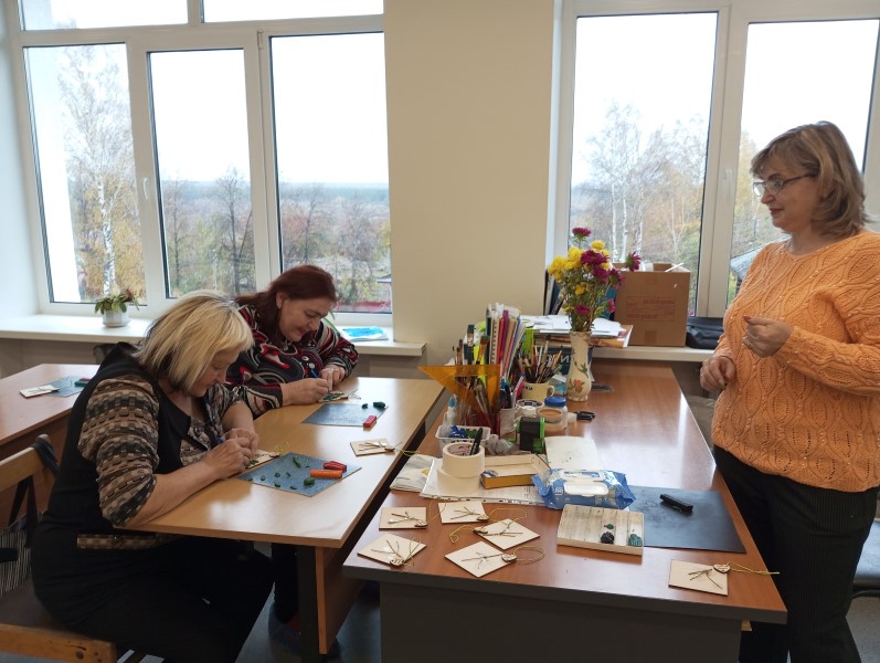 Ирина Александровна доступно, наглядно и в понятной форме изложила технику и приёмы пластилинографии. Обладая огромным творческим потенциалом, умело заинтересовала наших обслуживаемых. В ходе мастер-класса организовала работу таким образом, чтобы все присутствующие нашли применение полученным новым знаниям. Работа велась индивидуальная и коллективная. Наши обслуживаемые с большим желанием и очень активно выполняли работу в данной технике.