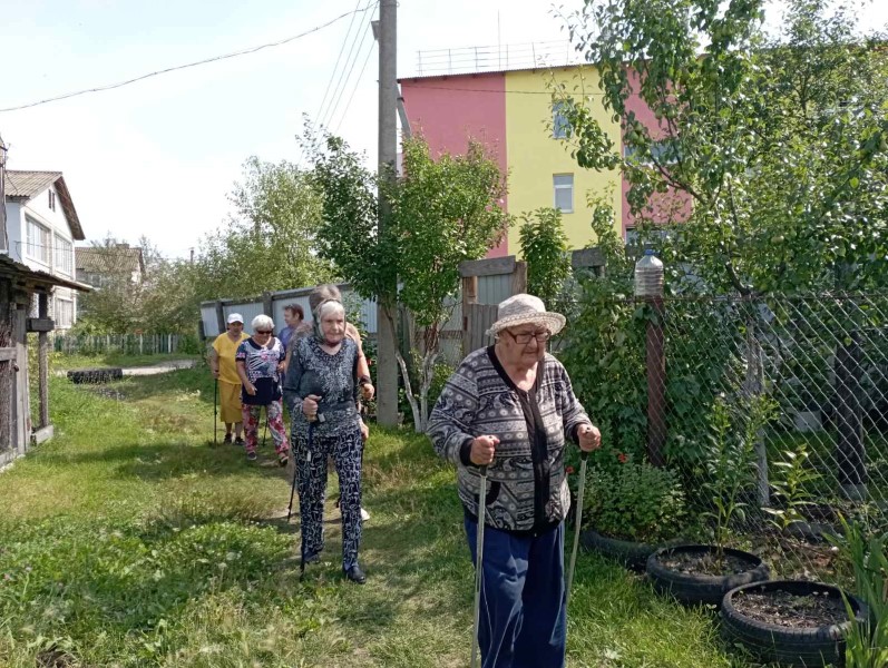 26 июля для жителей Спецжилдома состоялся очередное занятия клуба по скандинавской ходьбе «Ритм» с элементами развлекательной игры. Скандинавская ходьба не просто ходьба с палками, в нее включаются специальные упражнения, игры с палками, которые развивают гибкость, подвижность, сообразительность. Обычная ходьба сама по себе, конечно, полезна для здоровья, но, опираясь на специальные палки, человеку легче пройти большее расстояние, особенно в пожилом возрасте.