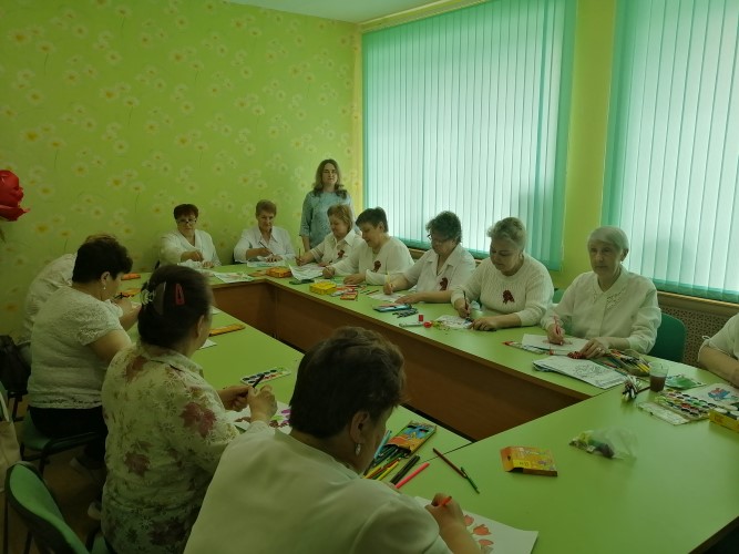 День Победы – праздник всеобщего патриотизма, благодарности поколениям военного времени. Обслуживаемые Отделения дневного пребывания с удовольствием приобщились к оформлению помещения к празднику. На занятии с элементами арт-терапии рисовали рисунки для выставки «Я помню! Я горжусь…». В рисунках изображена символика Победы: гвоздики, салют, вечный огонь, военная техника, солдаты, ордена и медали.