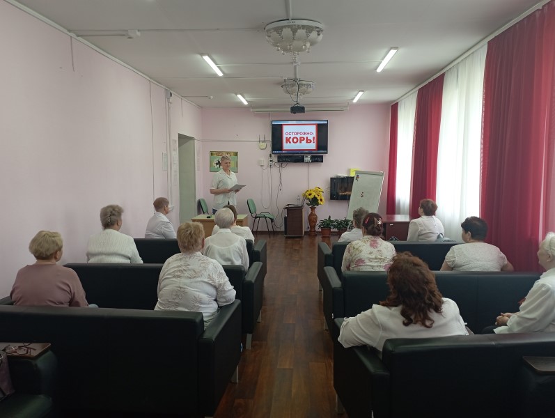 В ходе мероприятия обслуживаемым было рассказано о том, какие симптомы у этой болезни, как она передается, и что лучшая защита - это вакцинация! В конце лекции медицинской сестрой был продемонстрирован фильм "Что такое корь, и как от нее защититься".