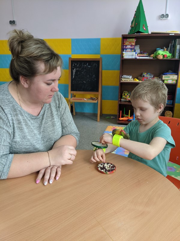 В рамках проведения месячника ознакомления с проблемами аутизма специалисты устраивают различные игры с детьми, посещающими занятия. Одна из таких развивающих игр – «Цветная вода» - учит различать цвета, другая игра – «Золушка» развивает мелкую моторику рук и заставляет работать оба полушария мозга. Дети разделились на тех, кому очень понравилось рисовать, других же вдохновило перебирание фасоли.