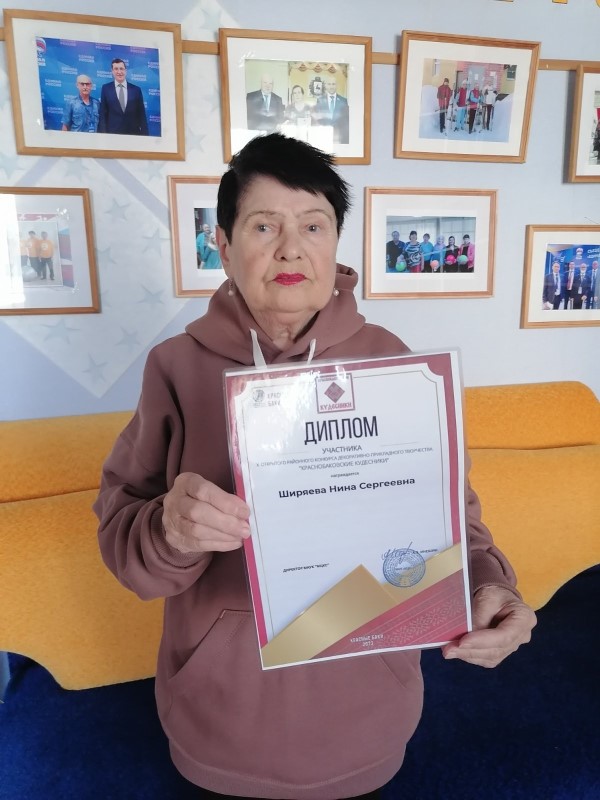 На протяжении 15 лет жительница отделения «Специализированный жилой дом для граждан пожилого возраста и инвалидов» Ширяева Нина Сергеевна занимается вязанием крючком и участвует в различных конкурсах, выставляя на суд жюри изделия, связанные своими руками. Вот и в этом году ее ажурная кофточка-паутинка получила достойную оценку в районном конкурсе декоративно-прикладного творчества «КРАСНОБАКОВСКИЕ КУДЕСНИКИ».