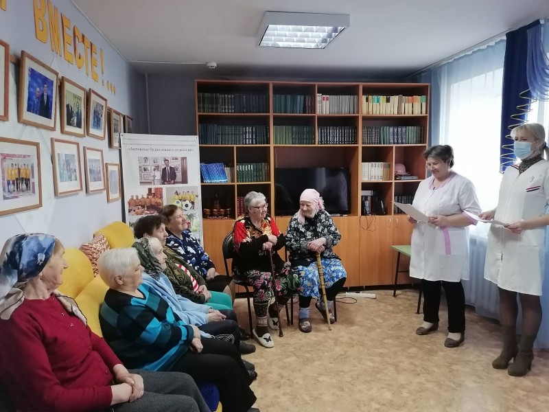 Сбалансированное правильное питание ― одно из обязательных условий долголетия и сохранения работоспособности для людей пожилого возраста. В этот период происходит перестройка всех основных процессов обмена веществ, ухудшается переваривание пищи и усвоение полезных микро- и макроэлементов, увеличивается потребность организма в витаминах и других нутриентах. Правильное меню, учитывающее возрастные изменения, поможет не только избежать проблем с пищеварением, но и сделать организм более устойчивым к повседневным нагрузкам и стрессам. Участников мероприятия - жителей отделения "Специализированный жилой дом", познакомили с темой «Правильное питание в пожилом возрасте» фельдшер отделения Беляева М.И. и мед. сестра Краснобаковской ЦРБ Малышева И.Б.