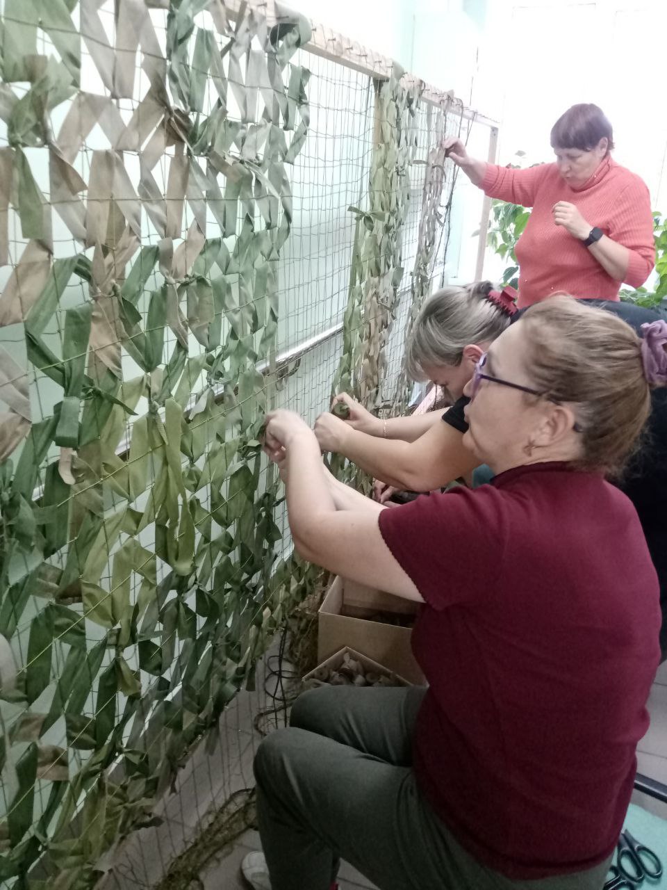 Работники ГБУ "КЦСОН Краснобаковского муниципального округа" продолжают плести маскировочные сети для СВО