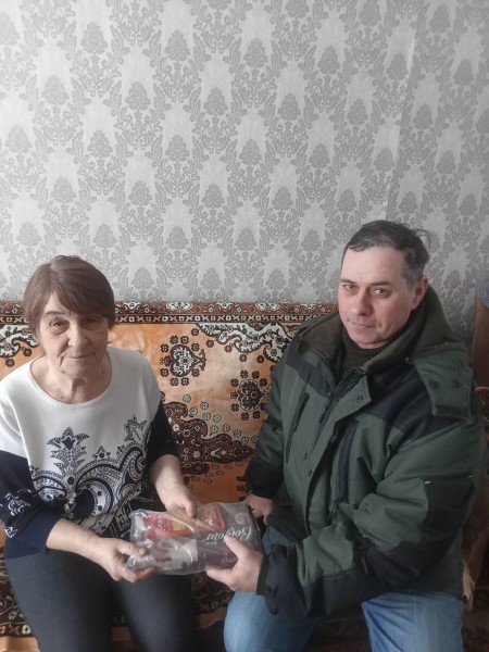 Социальный работник отделения социально-бытового обслуживания на дому №3 Лапшанская Н.Л. поздравляет обслуживаемую Абросимову В.Е. с наступающим праздником 8 Марта