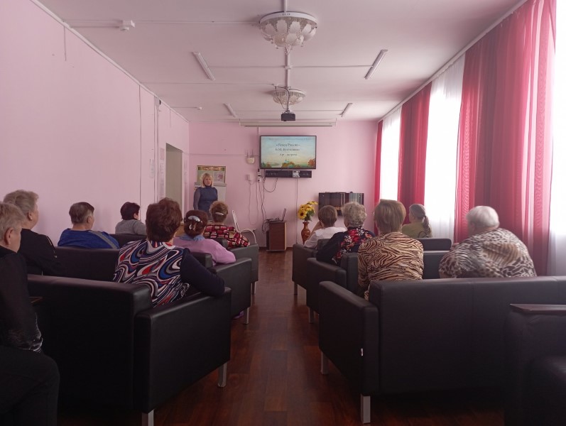 В Отделении дневного пребывания сотрудник Краснобаковской центральной библиотеки провела для обслуживаемых арт-встречу "Певец России - Б.М. Кустодиев".