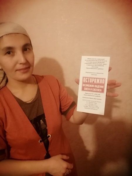 В связи с наступлением календарной весны и ожиданием тёплой погоды Отделение социального обслуживания семьи и детей во время установки пожарных извещателей, а также при проведении рейдов «социального патруля» раздаёт буклеты и инструктирует население об опасности схода снега с крыш и падения сосулек.