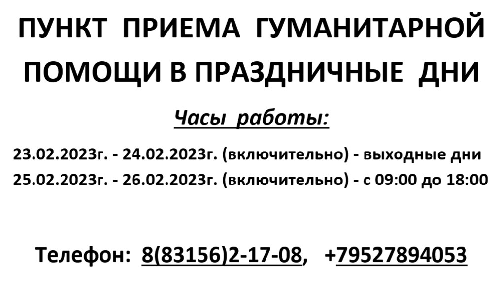 График работы пункта приема гуманитарной помощи в праздничные дни