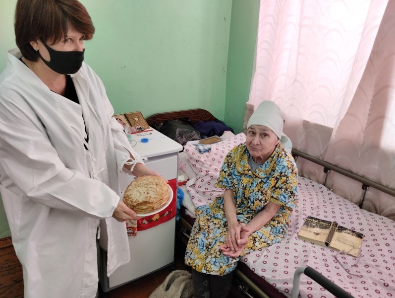 Работники отделения срочной социальной службы Комплексного центра провели акцию "Здравствуй, Масленица!" и поздравили маломобильных граждан, находящихся на лечении в отделении сестринского ухода ГБУЗ НО "Краснобаковская ЦРБ".