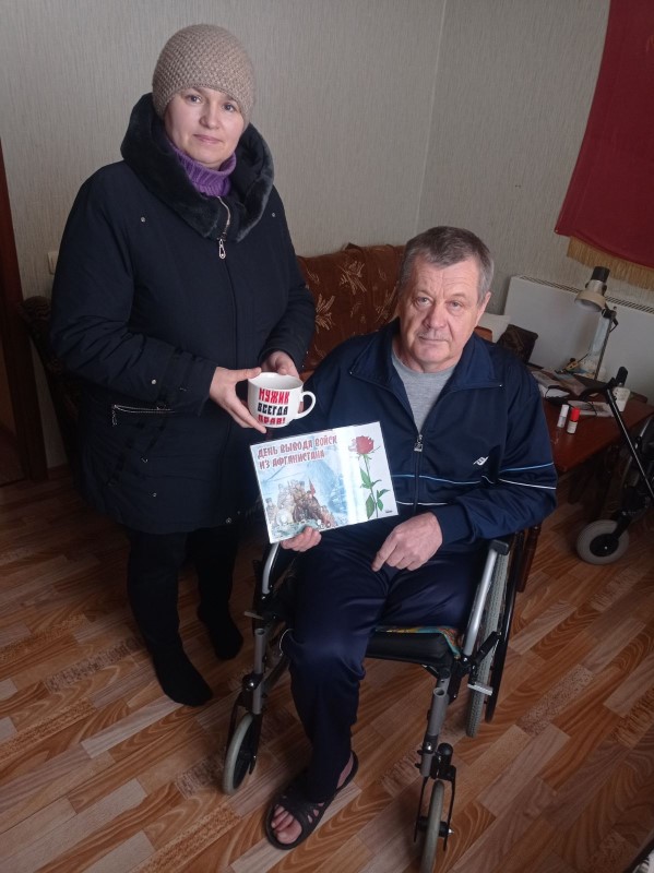 Работники срочной социальной службы Комплексного центра поздравили ветерана боевых действий Дмитричева С.А. с Днем вывода советских войск из Афганистана