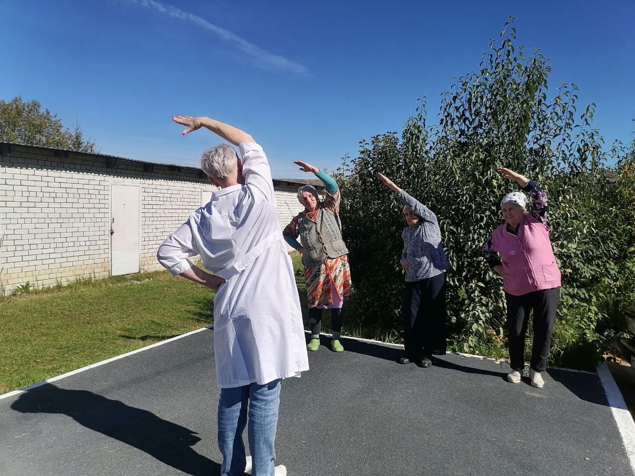 Физические упражнения очень естественны в молодости, но к 40-50 годам они совсем исчезают из нашей жизни. Пожилые люди ощущают отсутствие бодрости, тонуса, их движения становятся медленными, неуклюжими. Старость здесь ни при чем. Отсутствие движений ослабляет наши мышцы, связки, суставы. Без зарядки наша нервная система слабеет, ей становится сложно управлять нашими движениями. У пожилых людей появляется сутулость, шаркающая походка.В отделении «Специализированный жилой дом для граждан пожилого возраста и инвалидов»ГБУ «КЦСОН Краснобаковского муниципального округа» регулярно проходят занятия гимнастикой на свежем воздухе «На зарядку становись»