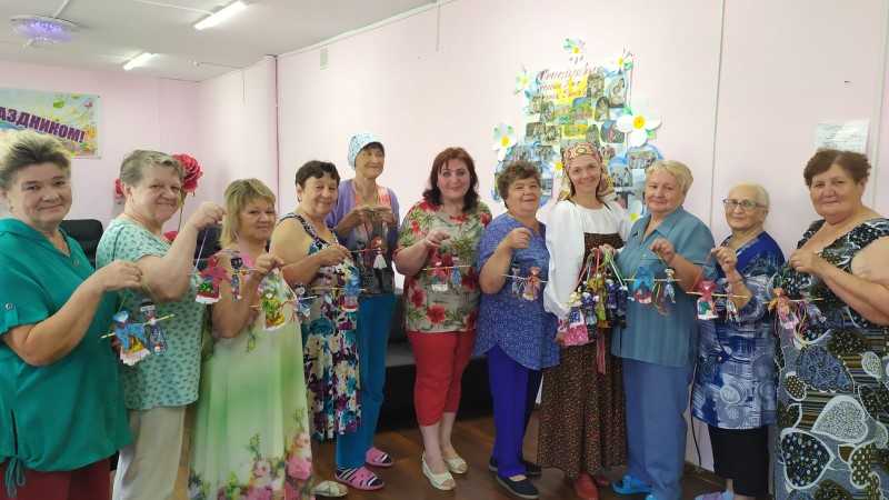 В преддверии праздника "День семьи, любви и верности" работники Школы традиционной культуры "Основа" провели для обслуживаемых Отделения дневного пребывания мастер-класс по изготовлению свадебной куклы-оберега. Данная кукла узнаваема с первого взгляда. Она парная, состоит сразу из двух фигурок - мужской и женской. Особенность свадебной куклы в том, что фигурки накрепко соединены общей рукой. Без слов этот образ говорит об основе крепких семейных отношений.