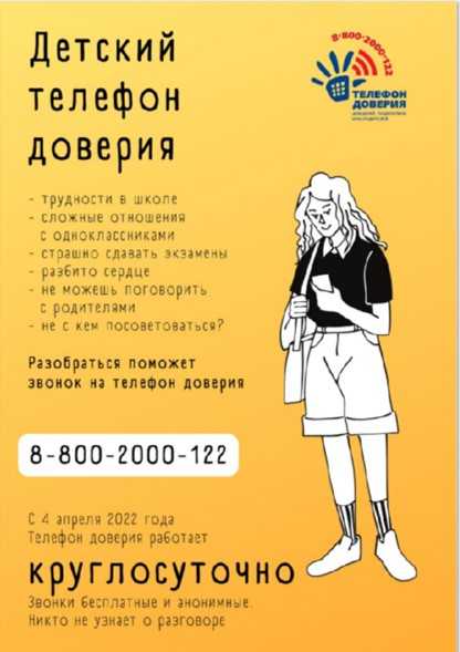 Информируем Вас о том, что с 4 апреля 2022 года Детский телефон доверия на территории Нижегородской области переходит на круглосуточный режим работы.