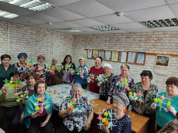 Обслуживаемые Отделения дневного пребывания посетили Краснобаковский Дом ремесел, где для них руководитель кружка "Петелька за петелькой" Э.К. Головина провела мастер-класс "Весеннее панно".