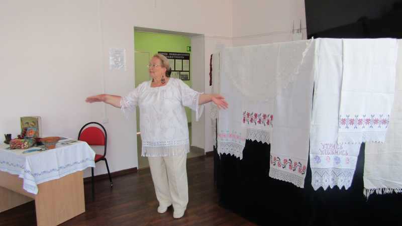 К фольклорной программе, прошедшей сегодня в Отделении дневного пребывания, пенсионеры готовились заранее. Расшитые кружевом скатерти и полотенца, строчёные занавески, вязаные салфетки и платки, словом, все то, что дорого и близко сердцу, что бережно хранится и передается из поколения в поколение, было оборудовано в мини-выставку в актовом зале ОДП. После небольшой лекции Треушниковой Л.Н. об истории появления сундука, обслуживаемые в ОДП обменивались секретами мастерства. Также прозвучало много интересных рассказов о том, как вещи создавались и как сложились судьбы мастериц.
