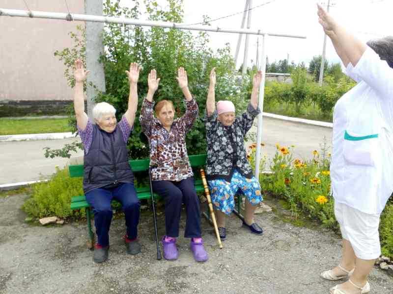 В отделении "Специализированный жилой дом" прошел курс утренней гимнастики на свежем воздухе "В здоровом теле здоровый дух". Фельдшер Беляева Марина Ивановна показала пожилым людям ряд упражнений, необходимых к выполнению. Их ежедневное соблюдение позволит укрепить иммунную систему и физическое состояние пенсионеров.