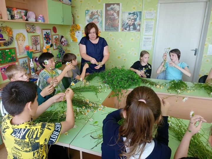 В ГБУ «КЦСОН Краснобаковского муниципального округа» совместно с учениками МАОУ СОШ № 2 р.п. Красные Баки прошел мастер-класс по плетению венка из полевых цветов, приуроченный к празднику «День семьи, любви и верности!»