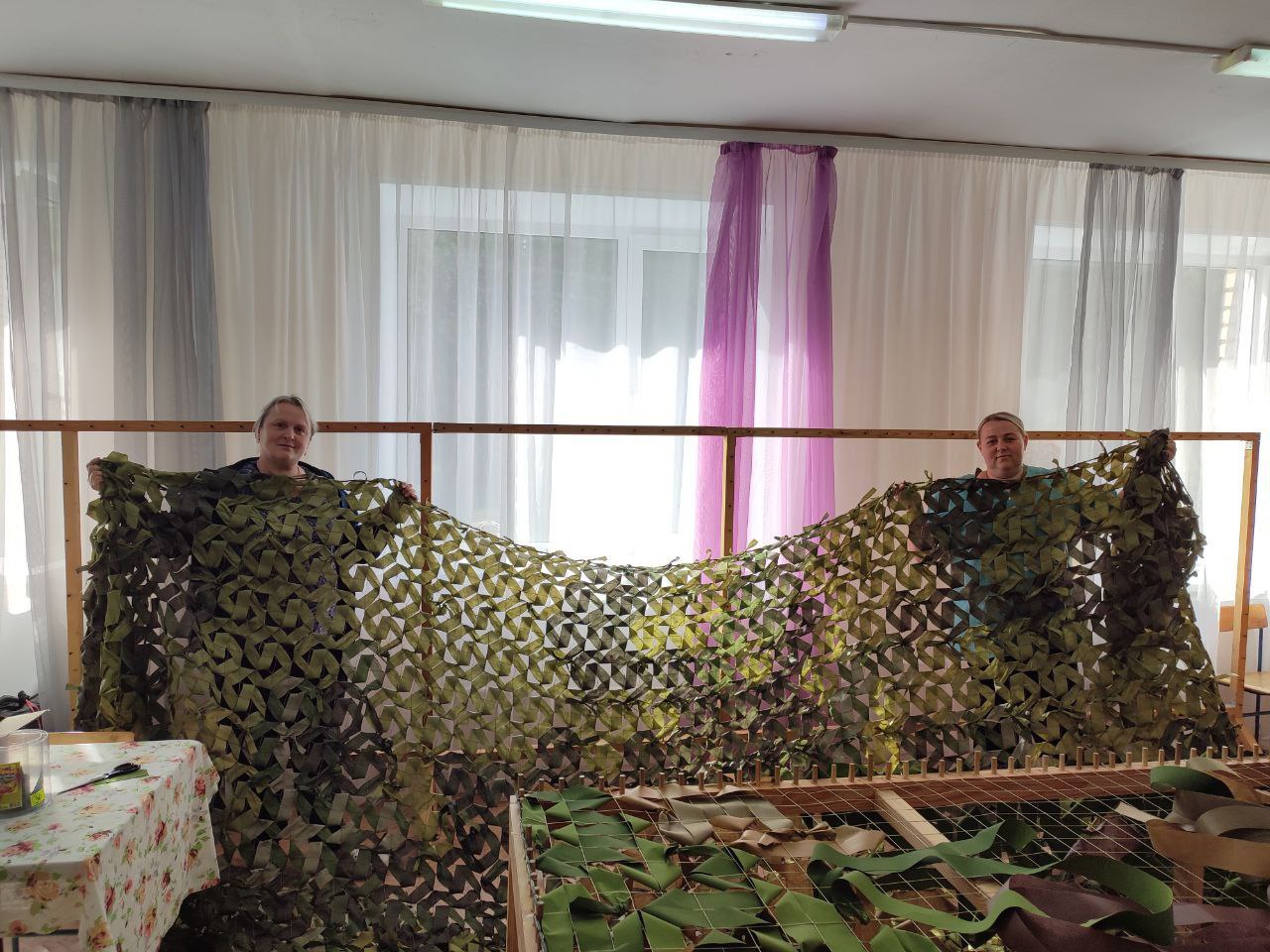 В с. Зубилиха социальные работники ГБУ "КЦСОН Краснобаковского муниципального округа" активно принимают участие в плетении маскировочных сетей для отправки в зону действия СВО