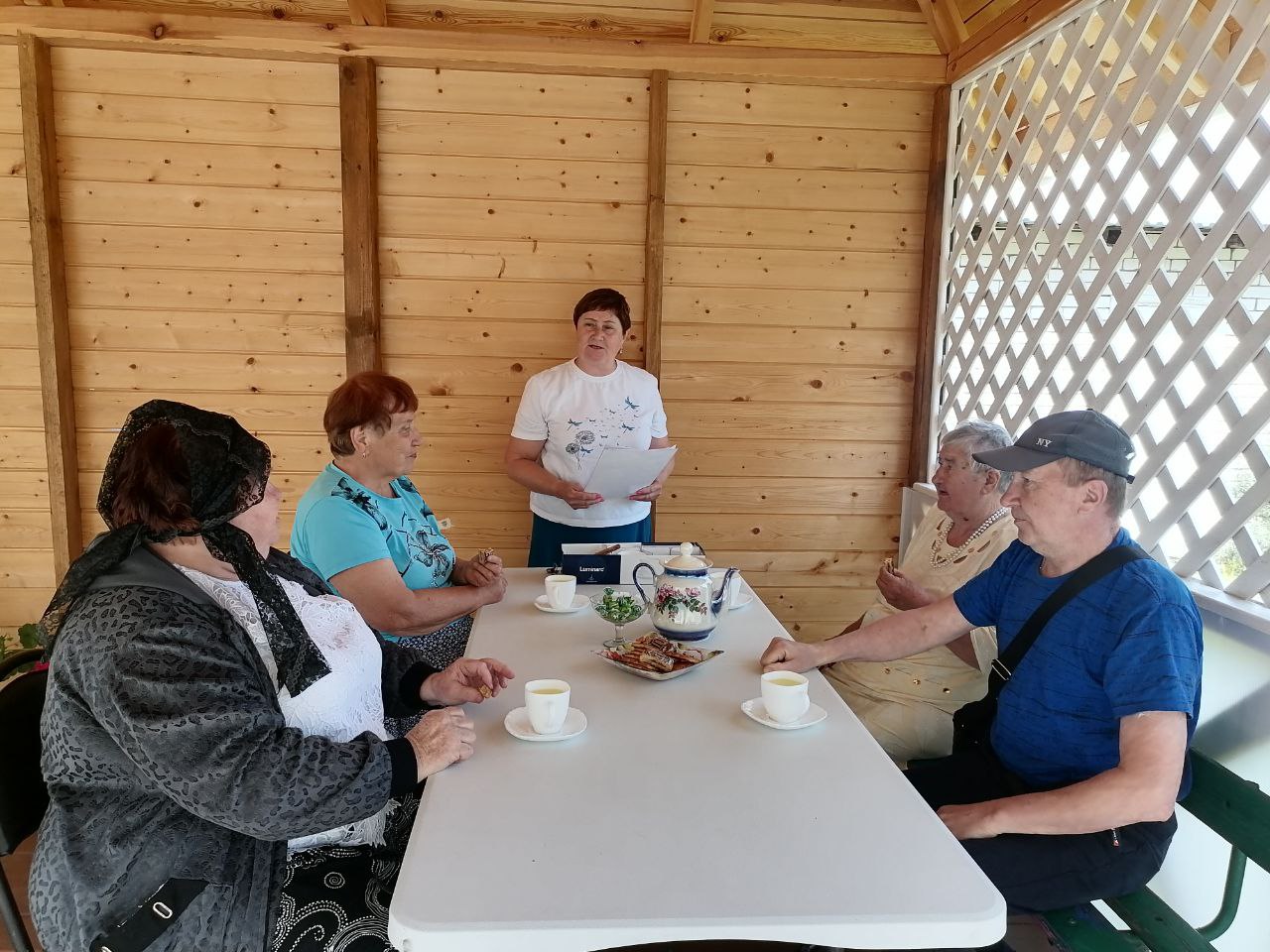 В отделении "Специализированный жилой дом для граждан пожилого возраста и инвалидов" ГБУ "КЦСОН Краснобаковского муниципального округа" состоялось очередное занятия членов клуба «Зеленый мир» с темой «Секреты долголетия», посвященное традициям русского чаепития. В ходе занятия члены клуба узнали о пользе напитка, о чайном этикете, об утвари и продуктах, сопровождающих чайную церемонию. Приняли участие в конкурсах. «Дегустаторы чая» должны были определить название компонента, добавленного в чай, вспомнить пословицы и поговорки об этом удивительном напитке. Не забыли и литературную викторину. Были зачитаны отрывки из литературных произведений, где шла речь о чае и чаепитии, а участники встречи отгадывали автора и название произведений. Собравшиеся на занятие члены клуба «Зеленый мир» пили чай для хорошего настроения, а также за чашечкой ароматного чая отдохнули, вспомнили всё хорошее, неспешно поговорили друг с другом.
