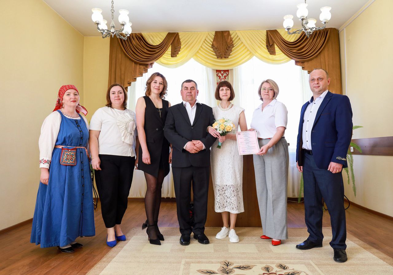 Радостным событием супругов поздравила Начальник отдела ЗАГСа Краснобаковского муниципального округа Титова С.И. и вручила поздравительное письмо от руководителя Главного управления ЗАГС Нижегородской области Красновой О.С.