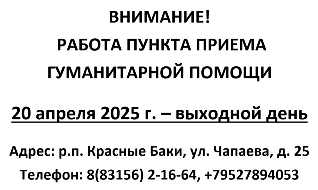 РЕЖИМ РАБОТЫ ПУНКТА ПРИЕМА ГУМАНИТАРНОЙ ПОМОЩИ В ВЫХОДНЫЕ ДНИ