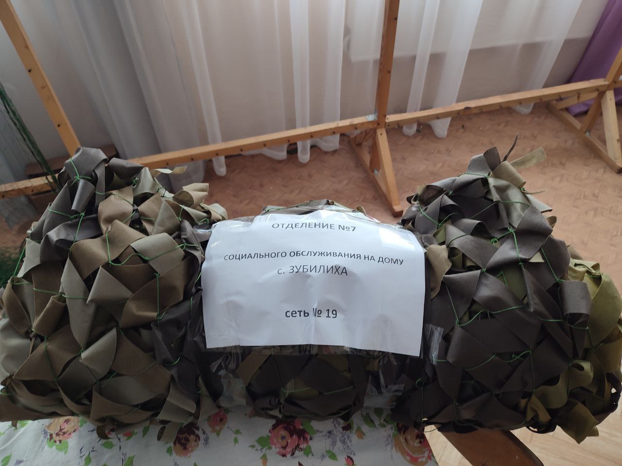 В с. Зубилиха социальные работники ГБУ "КЦСОН Краснобаковского муниципального округа" изготовили ещё одну маскировочную сеть для СВО