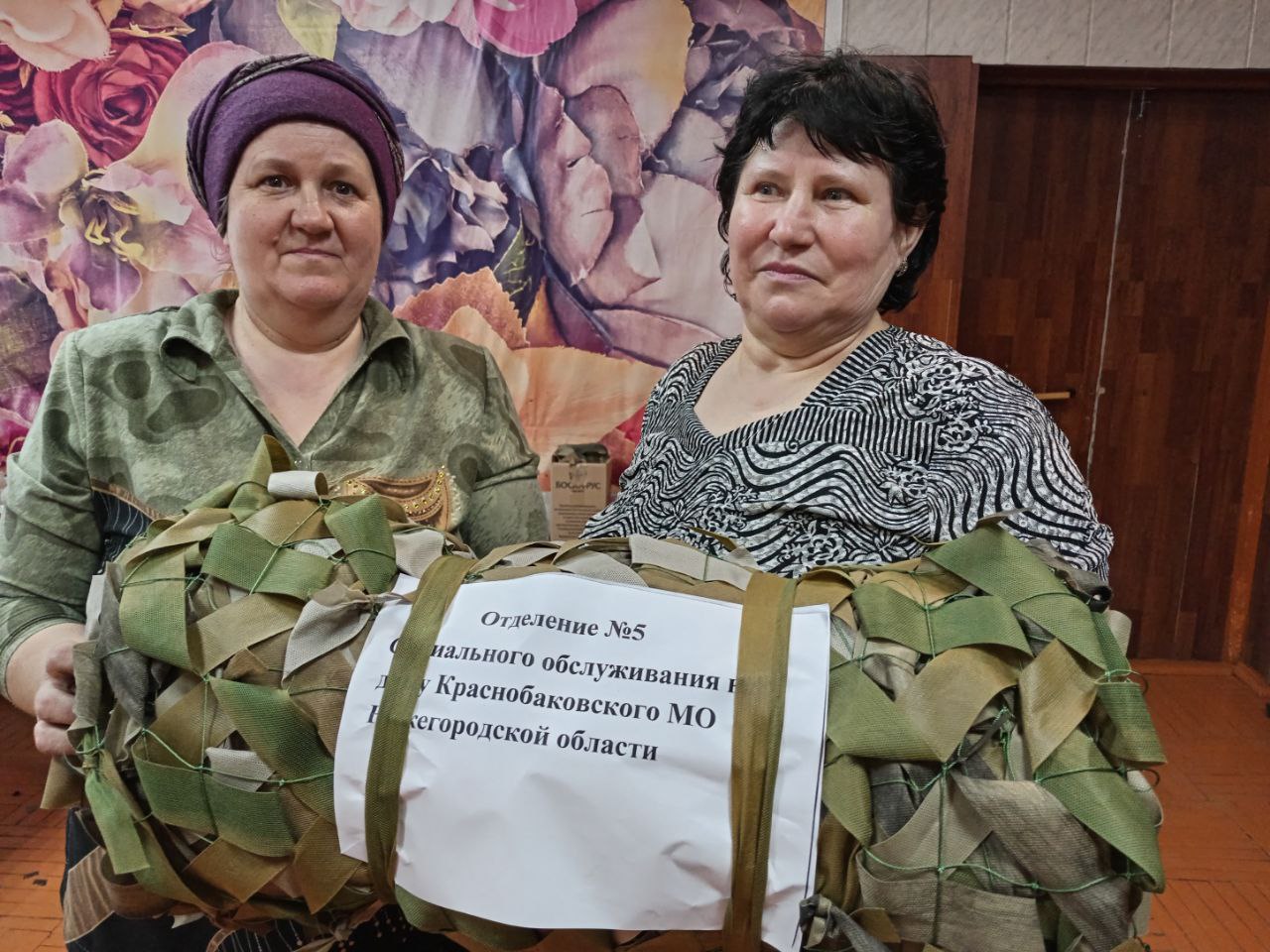 В с. Кириллово социальные работники ГБУ "КЦСОН Краснобаковского муниципального округа" сплели ещё две маскировочные сети для СВО