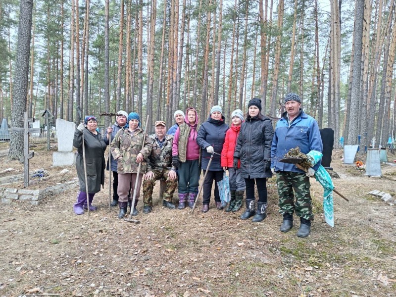 Социальные работники ГБУ "КЦСОН Краснобаковского муниципального округа" приняли участие в субботнике по уборке территории кладбища в с. Кириллово