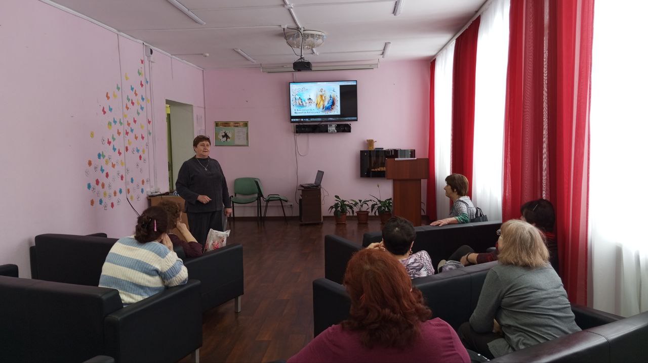 7 апреля для обслуживаемых отделения дневного пребывания ГБУ "КЦСОН Краснобаковского муниципального округа" прошёл час православной культуры «Приносите в мир добро». Жаркова Т.И. в сопровождении слайдовой презентации рассказала об одном из самых главных праздников Православного календаря – Благовещении Пресвятой Богородицы, о традициях, обычаях, обрядах, народных приметах, играх, в которые играли в этот день на Руси. Присутствующие задавали много вопросов, сами вспоминали рассказы своих бабушек об этом празднике. Не смотря на то, что праздник Благовещение приходится на пост, в старину было принято отмечать его спокойными, тихими застольями преимущественно в кругу семьи, или близких друзей. В завершение мероприятия участники посмотрели видеоролик «Благовещение. Благая весть», который сопровождался музыкальным фоном.