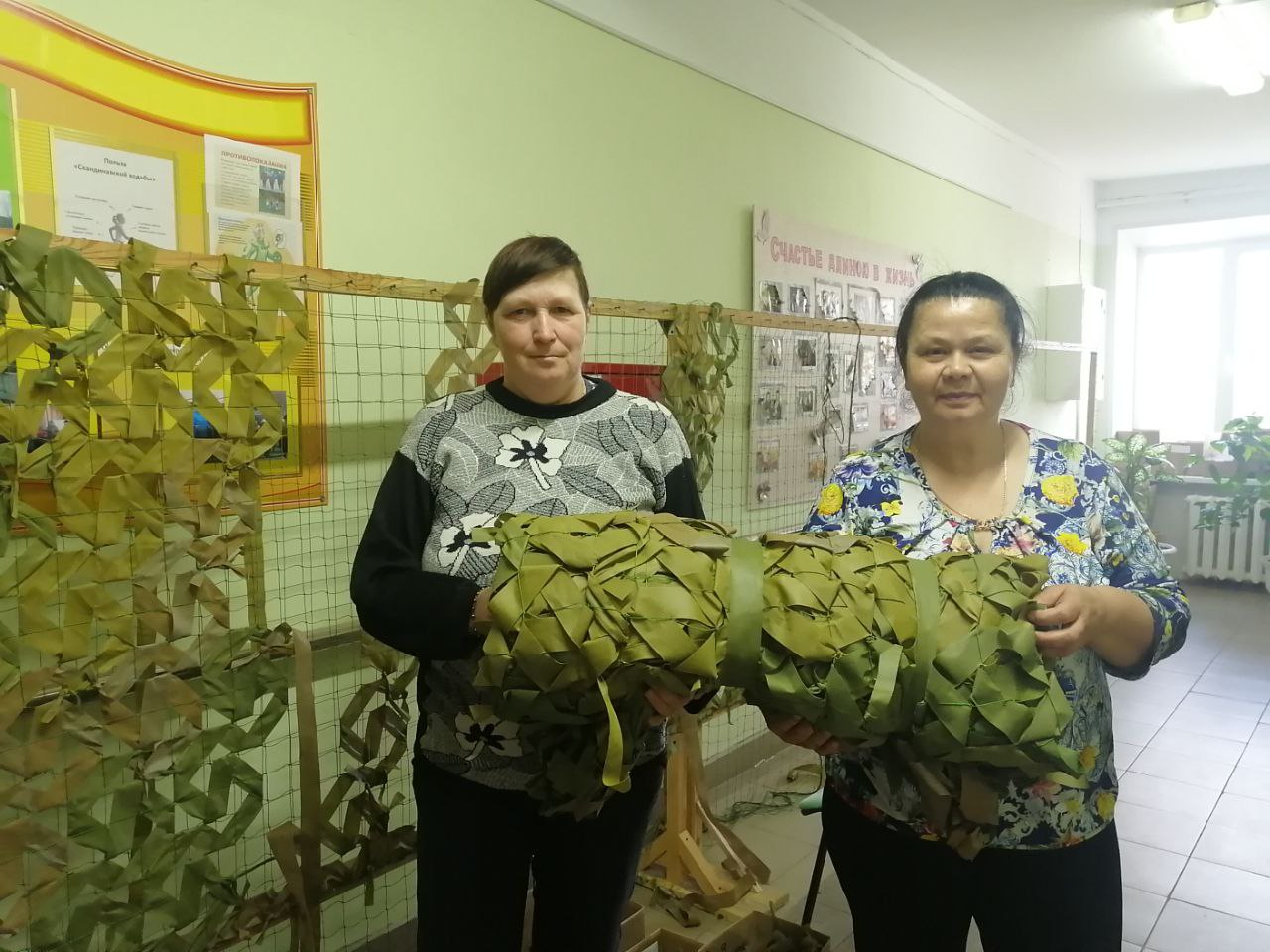В с. Зубилиха социальные работники ГБУ "КЦСОН Краснобаковского муниципального округа" изготовили пятнадцатую маскировочную сеть для СВО
