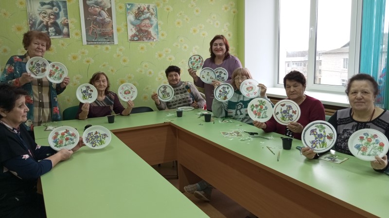 В отделении дневного пребывания ГБУ "КЦСОН Краснобаковского муниципального округа" состоялся мастер- класс "Декупаж тарелок".