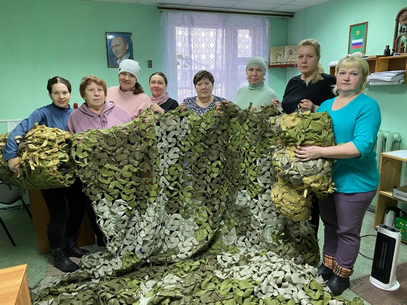 В с. Зубилиха и п. Шеманиха социальные работники ГБУ "КЦСОН Краснобаковского муниципального округа" сплели еще несколько маскировочных сетей для отправки в зону действия СВО