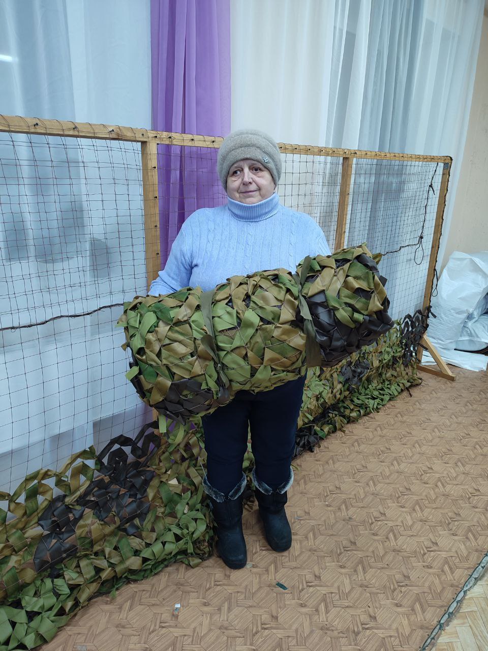 В с. Зубилиха социальные работники ГБУ "КЦСОН Краснобаковского муниципального округа" изготовили одиннадцатую маскировочную сеть для СВО