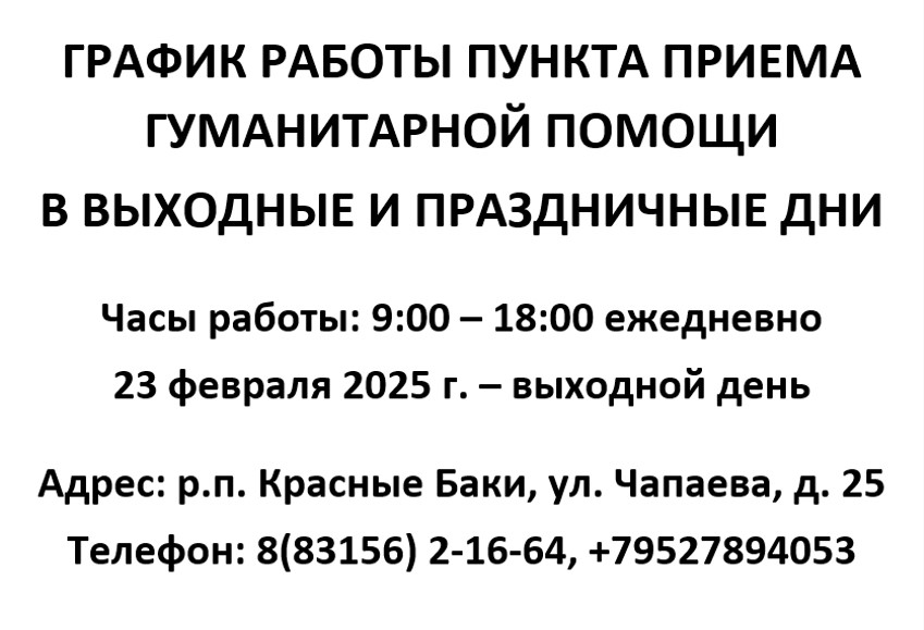 График работы пункта приема гуманитарной помощи в выходные и праздничные дни