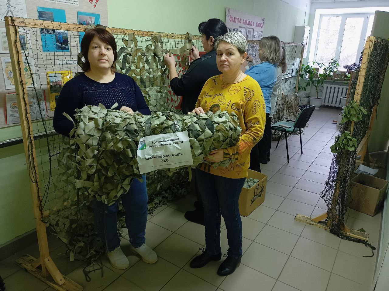 Сотрудниками ГБУ "КЦСОН Краснобаковского муниципального округа" изготовлена еще одна маскировочная сеть для отправки в зону действия СВО