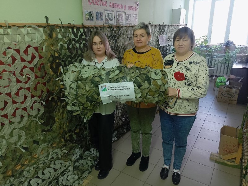 Социальные работники с. Носовая и с. Зубилиха продолжают усердную работу по изготовлению маскировочных сетей для отправки в зону действия СВО