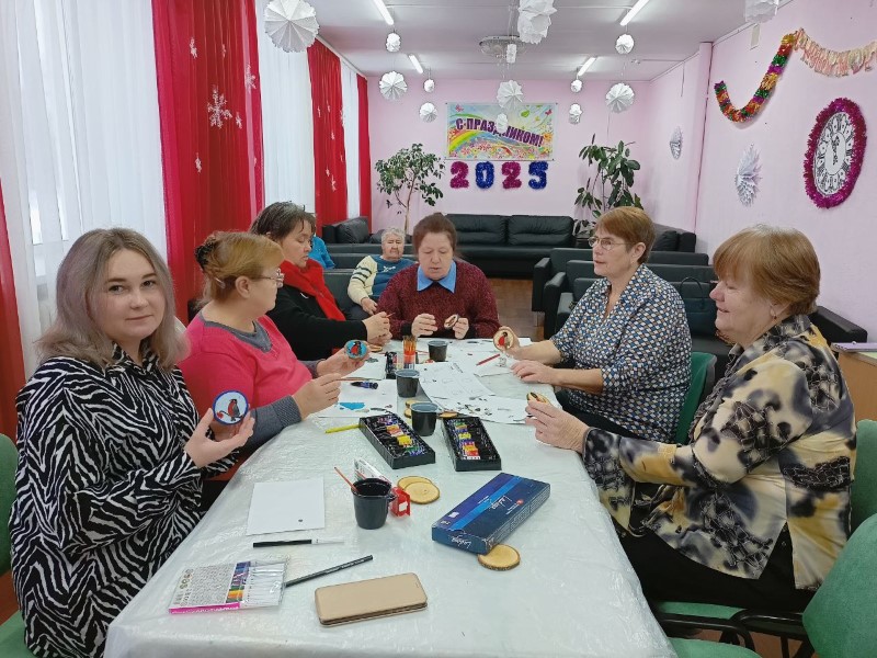 Рождественские и Новогодние украшения являются неотъемлемым атрибутом праздничного сезона. Совместное украшение елки – прекрасная традиция, которая сближает. Психолог Центра С.В. Алимова провела с обслуживаемыми Отделения дневного пребывания занятие по росписи новогодних игрушек. Участники с большим энтузиазмом приняли участие в мастер-классе, создав уникальные украшения своими руками. В процессе работы участники делились забавными историями из прошлого, что способствовало оживлению воспоминаний и поднятию настроения. По завершении занятия новогодние игрушки украсили праздничную елку. Праздничная атмосфера дополнялась исполнением новогодних песен и стихов.