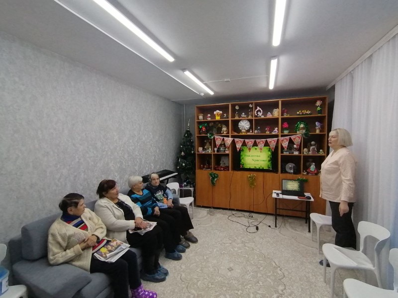 В отделении «Специализированный жилой дом для граждан пожилого возраста и инвалидов» состоялся библиотечный час «Рождество Христово», посвященный истории возникновения праздника.