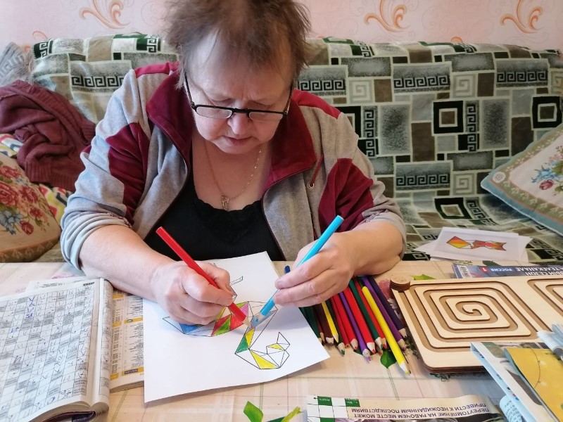 В отделении социально-бытового обслуживания с. Носовая продолжаются занятия с обслуживаемыми по развитию и тренировке мелкой моторики рук. На этот раз упражнения представляли из себя вырезание новогодних украшений из бумаги.