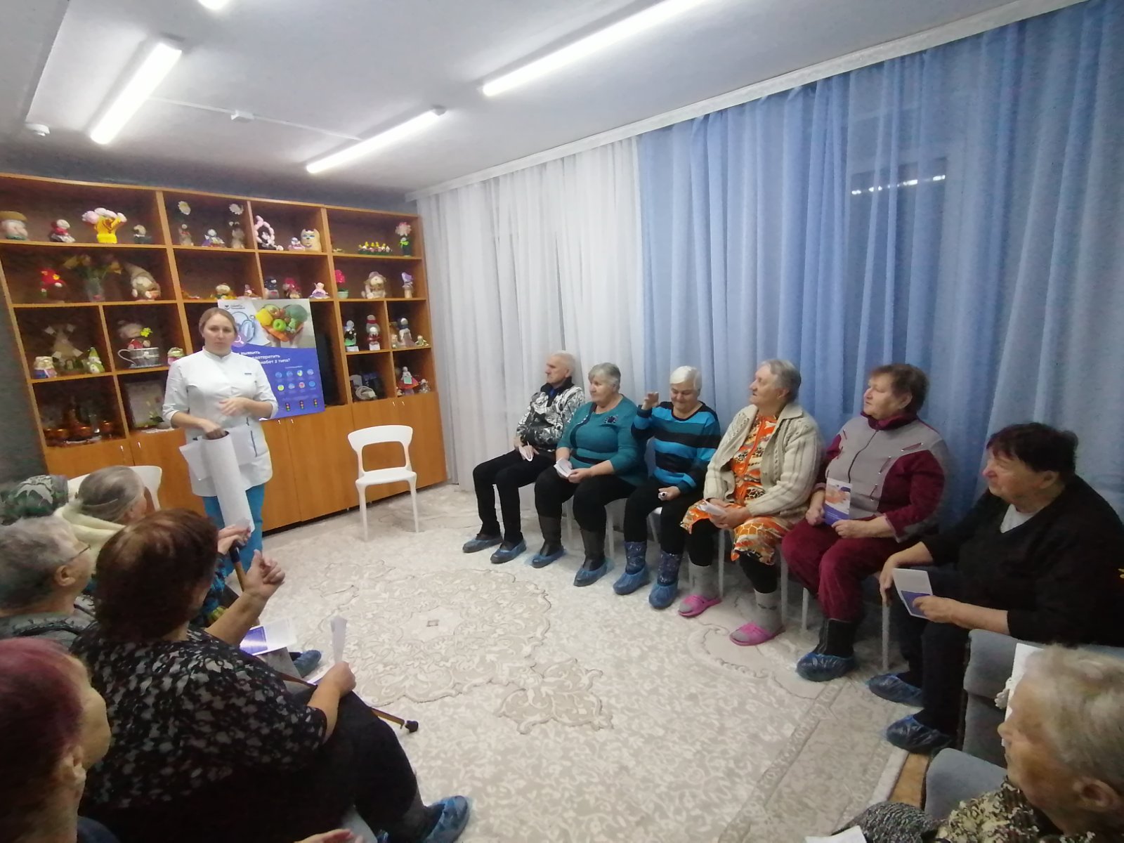 У жителей Спецжилдома состоялась встреча с сотрудниками Краснобаковской ЦРБ. На встрече присутствовали врач-офтальмолог Куркова И.Н., фельдшер Чистякова Ю.Н. Проживающие узнали о профилактике глазных болезней в пожилом возрасте, о профилактике сахарного диабета и атеросклероза. Жители смогли задать интересующие их вопросы. Врач-офтальмолог Куркова И.Н. провела осмотр и консультации для желающих. Фельдшер Чистякова Ю.Н. проверила кровь на сахар.