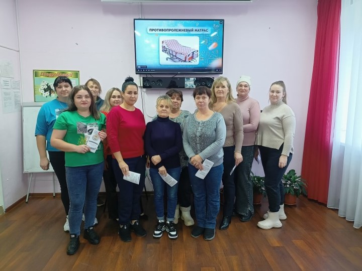 В ГБУ «КЦСОН Краснобаковского муниципального округа» продолжается обучение сотрудников, осуществляющих уход за тяжелобольными людьми на дому, в «Школе ухода» в рамках системы долговременного ухода. Программу занятий подготовила медицинская сестра Чиркова Г.В. и психолог Алимова С.В. на темы: «Особенности ухода за больным после инсульта», «Дыхательная гимнастика для саморегуляции эмоционального состояния». Программа занятий в Школе ухода включает в себя изучение теоретических основ и практическое освоение навыков общего ухода, профилактики осложнений, методов самообслуживания, правил гигиенического ухода, питания и кормления, а также приемов первой доврачебной помощи. В ходе занятий акцент делается на практическом отработке навыков ухода за лежачими больными, включая использование абсорбирующего белья, проведение процедур личной гигиены и профилактику пролежней. Основной особенностью обучения является его практическая направленность. Ожидаемые результаты работы Школы ухода включают поддержание гармоничных отношений в семьях, оптимизацию процесса ухода за пожилыми людьми и инвалидами, развитие у родственников таких качеств, как терпение, такт и сострадание, а также установление психологического контакта с тяжелобольными, что подразумевает умение адаптироваться к их потребностям и особенностям. Пожилые люди и инвалиды получают возможность восстановить способность к взаимодействию с окружающими, а так же осуществлять за собой уход.