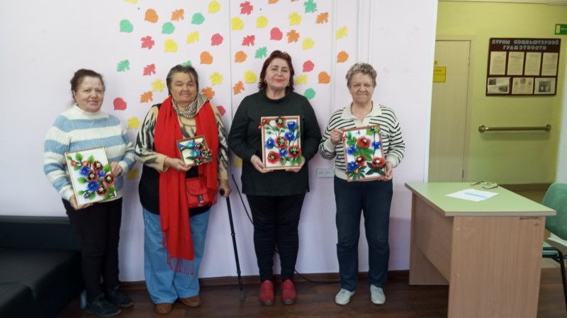 Обслуживаемые дневного отделения ГБУ КЦСОН Краснобаковского муниципального округа под руководством инструктора Науменко Т.В. на занятиях по трудотерапии изготовили панно из объемных цветов из капрона. Обслуживаемые обучились приемам работы с капроном, развили свои творческие способности, внимание, память, воображение, мелкую моторику рук. Занятия с капроном воспитывают аккуратность, эстетический вкус, интерес к работе с капроном, умение экономно использовать материал.