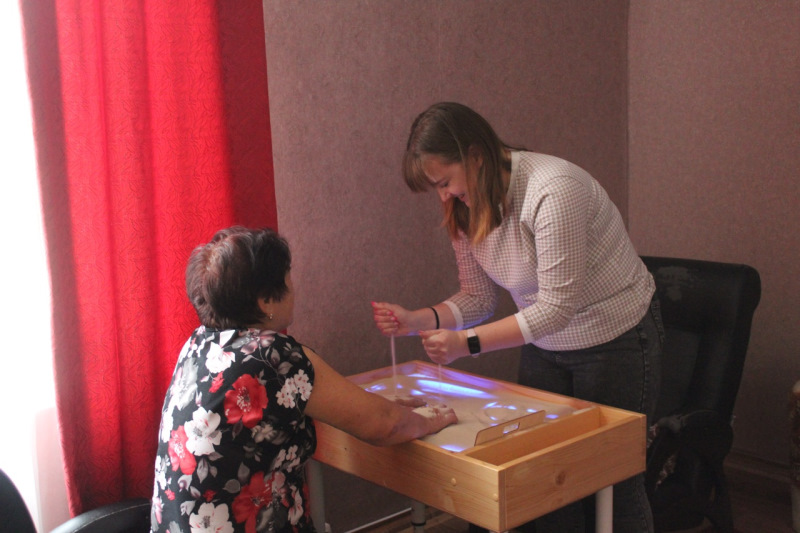 В отделении дневного пребывания для отдыхающих проведено занятие по пескотерапии. Песок обладает рядом преимуществ. С возрастом чувствительность рук может снижаться, а песок помогает развить тонкую моторику, пластичность пальцев и стимулирует таким образом работу мозга – улучшает память и концентрацию внимания.