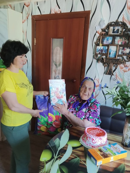 С этой знаменательной датой её поздравила социальный работник Биткина Наталья Владимировна, вручила подарок и открытку с поздравлениями от главы местного самоуправления Починковского муниципального округа Ларина М. В.
