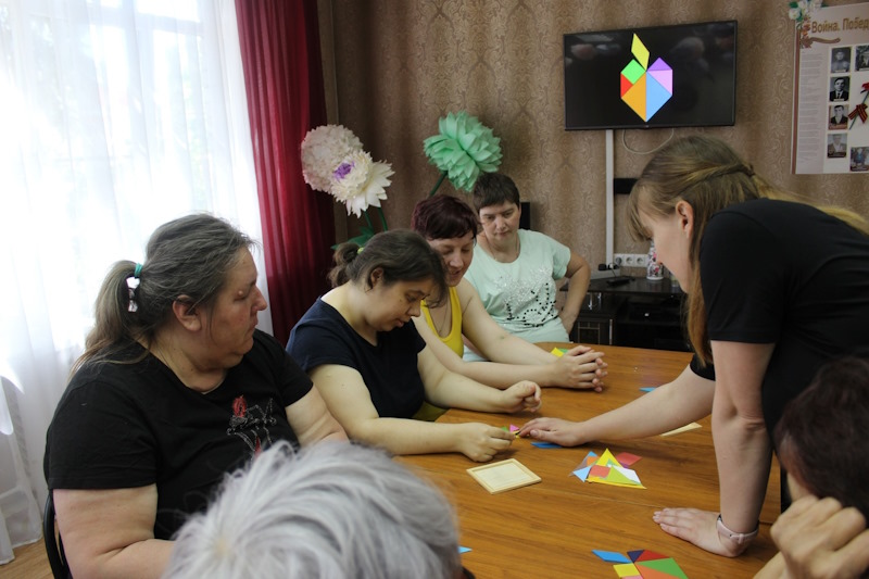 Для отдыхающих отделения дневного пребывания инструктором по трудовой терапии Кузнецовой М.С. было проведено интеллектуальное занятие танграм. Головоломки танграм развивают логическое, пространственное и образное мышление, внимание и воображение.