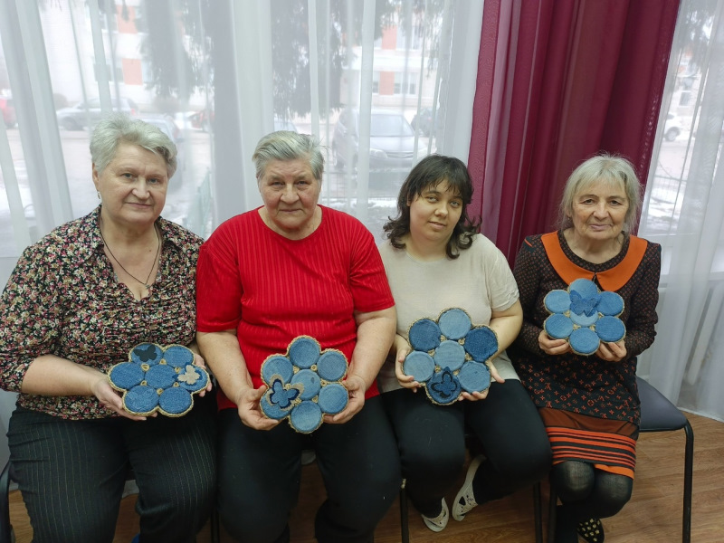 В отделении дневного пребывания отдыхающие изготовили оригинальные подставки под горячее из старых джинсов и крышек.