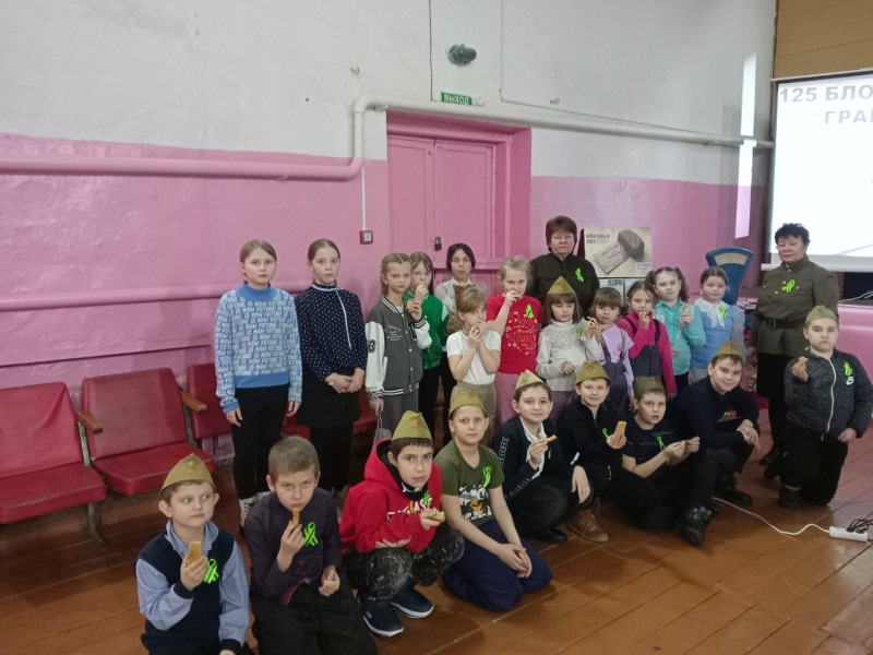2025 год в России официально объявлен Годом защитника Отечества, что подчеркивает важность патриотизма и уважения к тем, кто защищал и защищает страну. В рамках открытия Года защитника Отечества и Года 80-летия Победы в Великой Отечественной войне специалисты Наруксовского СДК и библиотеки провели час исторической памяти для школьников начальной школы «БЕССМЕРТЕН ПОДВИГ ЛЕНИНГРАДА…». В героическую историю нашей страны навечно вписана дата 27 января 1944 года. В этот день, 81 год назад, была прорвана блокада Ленинграда. Его называют Ленинградским Днем Победы. В знак памяти о тех страшных днях всем участникам прикрепили на грудь «Ленточку Ленинградской Победы». В ходе мероприятия ведущие рассказали о том в каких условиях выживали блокадники, когда продовольственные запасы иссякали, а холод и голод стали постоянными спутниками жителей, ленинградцы проявили невероятную силу духа. Они прошли через настоящий ад: бомбежки, голод, холод, смерть на каждом шагу. Выжить в те страшные дней ленинградцам помог кусочек хлеба в 125 грамм. Именно этот кусочек хлеба отделял жизнь от смерти. Ребята посмотрели небольшие постановки из жизни ленинградских детей во время блокады, подготовленные участниками театрального кружка «Калейдоскоп» (Наташей Васиной, Юлей Сониной, Софией Еркиной, Мадиной Абдушариповой, Дианой Ковалевой, Настей Мамыкиной - руководитель Бацына М.С.) Особенными чувствами прониклись они к детям блокады, к судьбе маленькой девочки Тани Савичевой. Ее дневник стал одним из символов Великой Отечественной войны. Ведущие также рассказали ребятам об еще одном символе — блокадной ласточке. Когда враги весной 1942 года объявили, что в осаждённый город и птица не пролетит, многие ленинградцы стали носить на груди жестяную ласточку с письмом в клюве. Жетон назывался «Жду письма» и символизировал надежду и веру в светлое будущее. Все ребята написали свои добрые пожелания жителям блокадного Ленинграда. В конце мероприятия ребятам раздали кусочки хлеба, ставшего символом блокадного Ленинграда. Для взрослого населения прошла акция памяти «Блокадный хлеб». В ней участвовали женщины, которые плетут сети для СВО. Каждый участник акции получил символический кусочек хлеба в 125 грамм и информационную листовку.